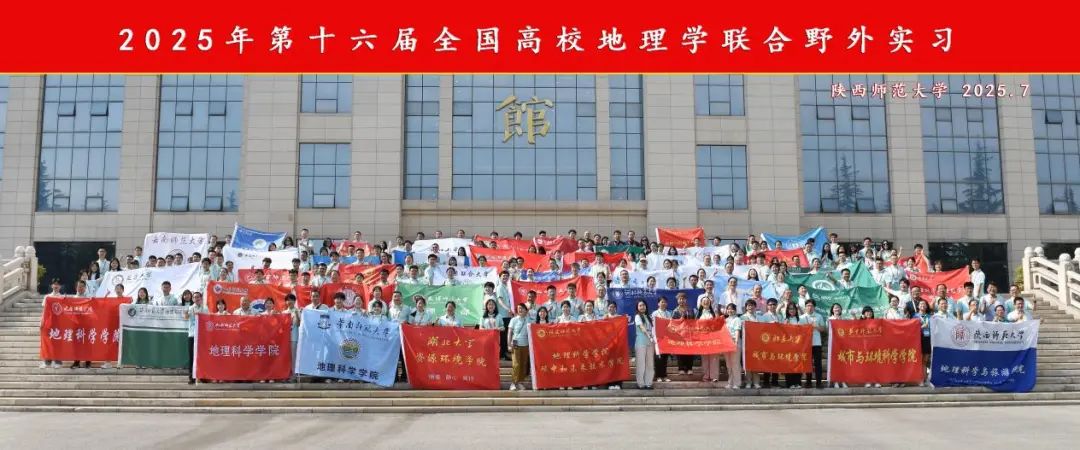 2025年7月29日,第十六届全国高校地理学联合野外实习在陕西西安正式开幕。本次实习吸引了来自福建师范大学、北京大学、北京师范大学、南京大学、华东师范大学、武汉大学和兰州大学等51所高校的200余名师生。来自我院2022级地理学国家人才培养基地班的刘丞泽、陈烨、谢雨蝶、冯若铃、陈彦希、陈舒怡6位同学在我院吴福忠院长、王晓文老师和靳建辉老师的带领下参与本次实习。