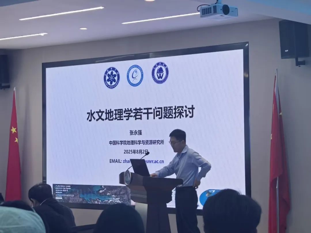 随后,冯仁国教授以“弘扬科学文化,崇尚品质科研”为题,向同学们讲述了科学文化的内涵和品质科研的重要性。秦为稼教授则作了“从天山到南极大断面—ITASE-ACDA-PANDA”的报告。他带领同学们跨越时空,从天山脚下一直延伸到南极大陆,介绍了一系列国际合作科研项目。张强教授首先作了“全球变化背景下的区域水安全问题”的报告,引发了同学们对气候变化与水资源管理的深入思考;张永强教授则从专业角度探讨了“水文地理学若干问题”,为同学们拓宽了学术视野等。在交流讨论环节,领导专家们与同学们进行了热烈的互动,大家各抒己见、畅所欲言,学术氛围浓厚。最后,张元明老师等为优秀学术报告颁奖,表彰了在学术研究中表现突出的团队与个人。