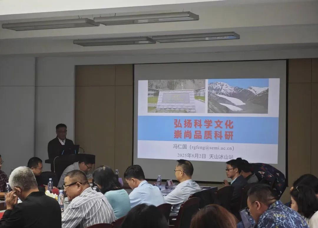 8月2日,2025年冰雪变化及其影响学术年会暨“科研启航计划”交流会在天山站报告厅隆重举行。王飞腾站长首先介绍了天山冰川站及“科研启航计划”的基本情况,展示了天山冰川站建站以来的风采和启航计划不断延续的意义和成果。天山冰川站建立于中国冰川学开创之初的1959年,标志着中国冰川学研究从无到有,从野外考察走向定位观测试验。紧接着李忠勤老师对天山冰川站冰川研究进展进行了报告。