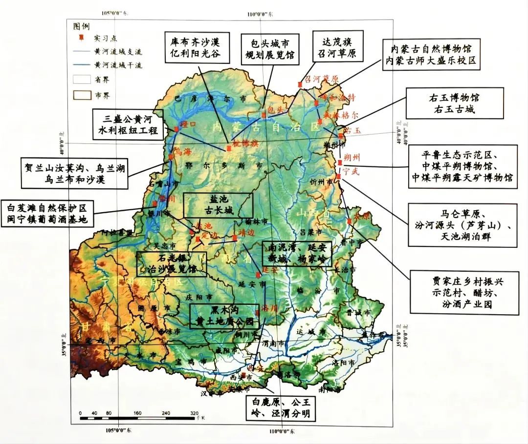 本次全国高校地理学联合实习紧扣国家“黄河流域生态保护与高质量发展”战略,聚焦黄河“几字湾”区域,以“黄土、黄沙、黄河”为核心,跨越陕西、宁夏、内蒙古、山西四个省区,历时14天,实习总里程约3000多公里。