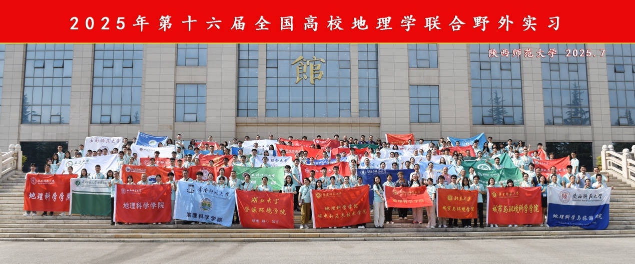 2025年7月28日,第十六届全国高校地理学联合野外实习在陕西师范大学正式开幕。本次实习吸引了来自福建师范大学、北京大学、北京师范大学、南京大学、华东师范大学、武汉大学、兰州大学等51所高校的200余名师生。我院2022级地理学国家人才培养基地班的刘丞泽、陈烨、谢雨蝶、冯若铃、陈彦希、陈舒怡6位同学在我院吴福忠院长、王晓文老师和靳建辉老师的带领下参加了本次实习。