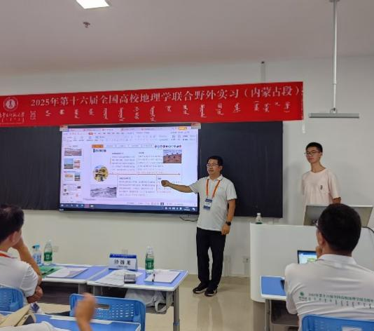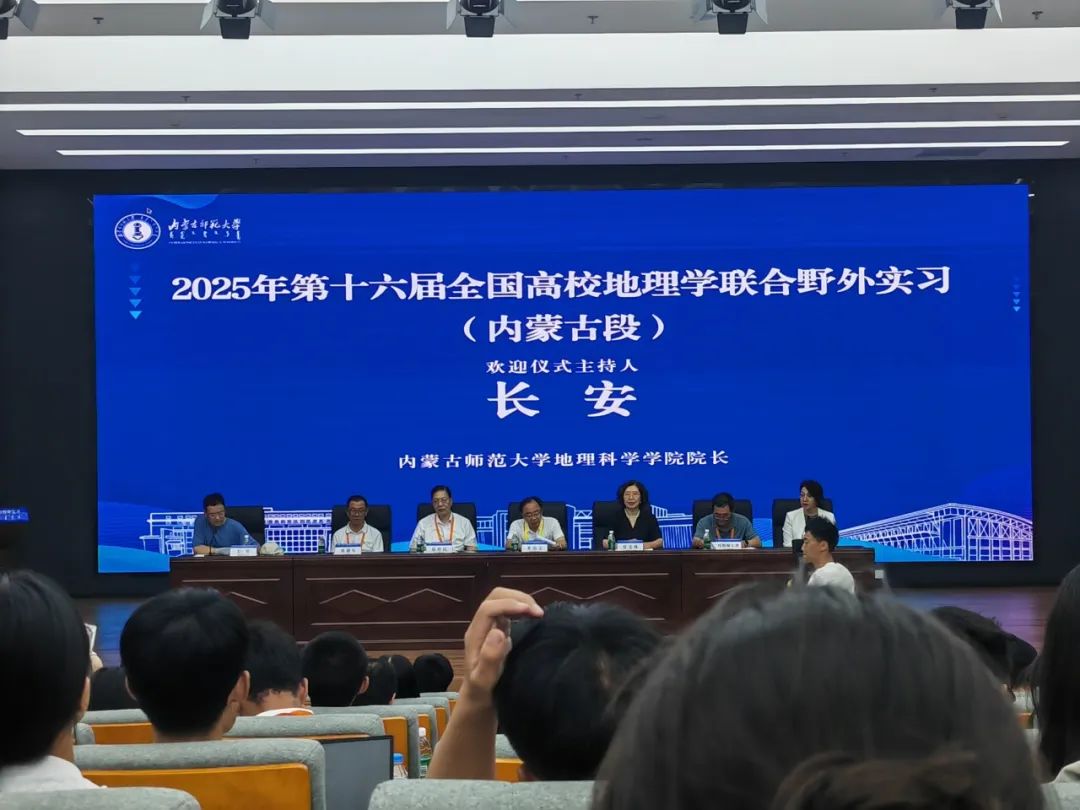 8月6日下午,实习小队前往内蒙古师范大学开展实习阶段性总结会议及欢迎仪式,会议由内蒙古师范大学地理科学学院院长安教授主持。内蒙古师范大学副校长贾美林教授在致辞中,对各高校师生的到来表示热烈欢迎,并简要介绍内蒙古师范大学及地理科学学院的基本情况。教育部地理学科类专业高等教育指导委员会副主任、教育部地理学野外实践课程虚拟教研室负责人、华东师范大学光华书院院长郑祥民教授在发言中,对各参与方的付出表示感谢,同时充分肯定了承办学校、带队老师及学生在实习活动中的贡献。