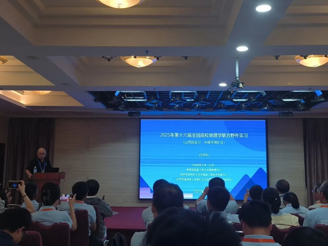 一场干货满满的专家报告拉开8月8日的实习序幕。中国地质大学(北京)白中科教授以中煤平朔集团安太堡露天煤矿为案例,深入解读煤矿开采后的生态修复之道。白教授从基地概况、科教功能讲起,细致介绍露天采矿工艺、观测点设置、地貌重塑与土地整形技术,更着重强调“科教融合、产教融汇”的育人理念——“要把专业建在产业上,把课程建在产线上”。报告中,白教授提出的“五元共轭理论”,即地貌重塑、土壤重构、植被重建、景观重现、生物多样性重组与保护,为同学们构建起生态修复的系统认知框架,引发大家对资源型地区可持续发展的思考。