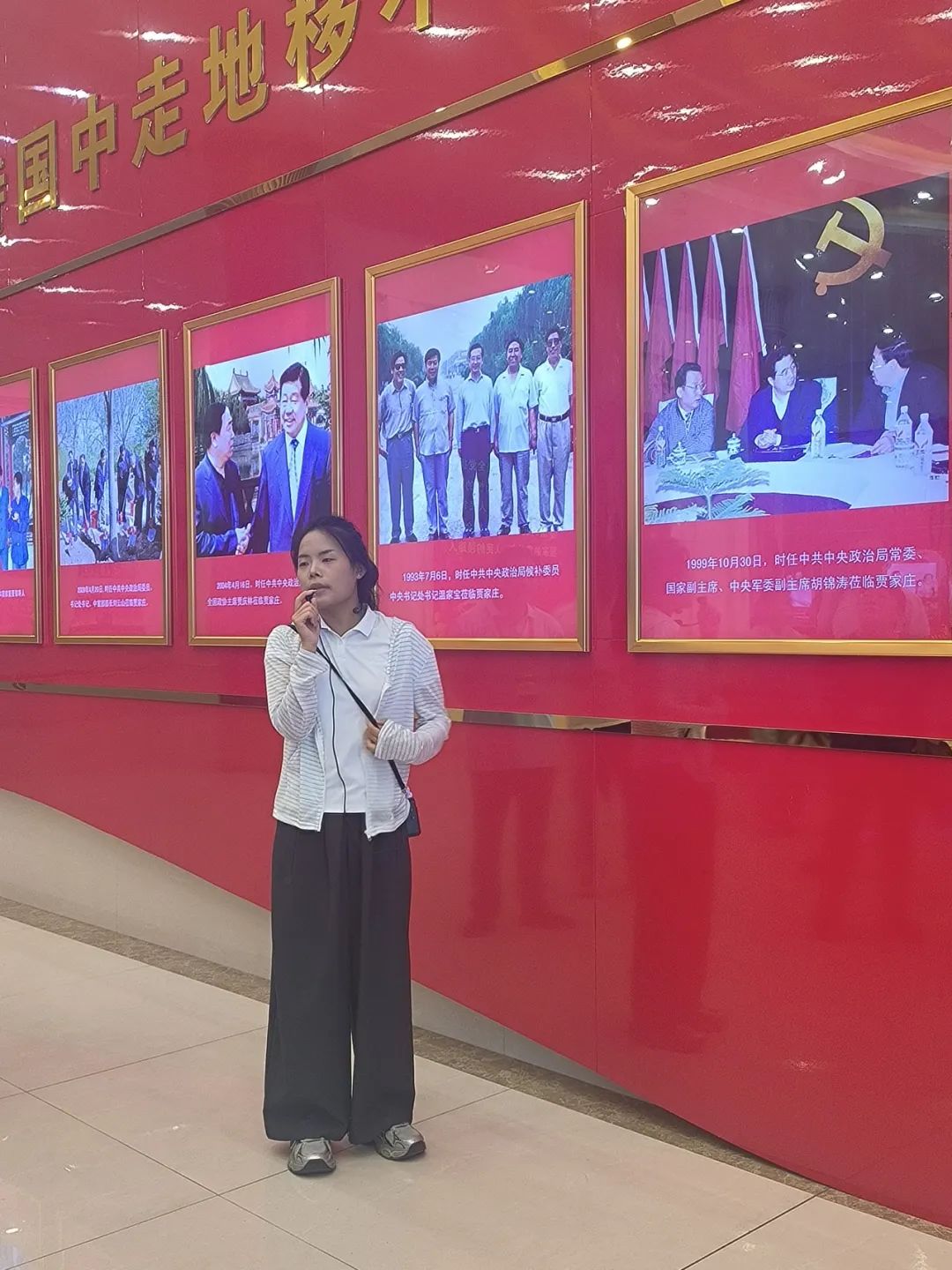 工作人员讲解贾家庄发展历史