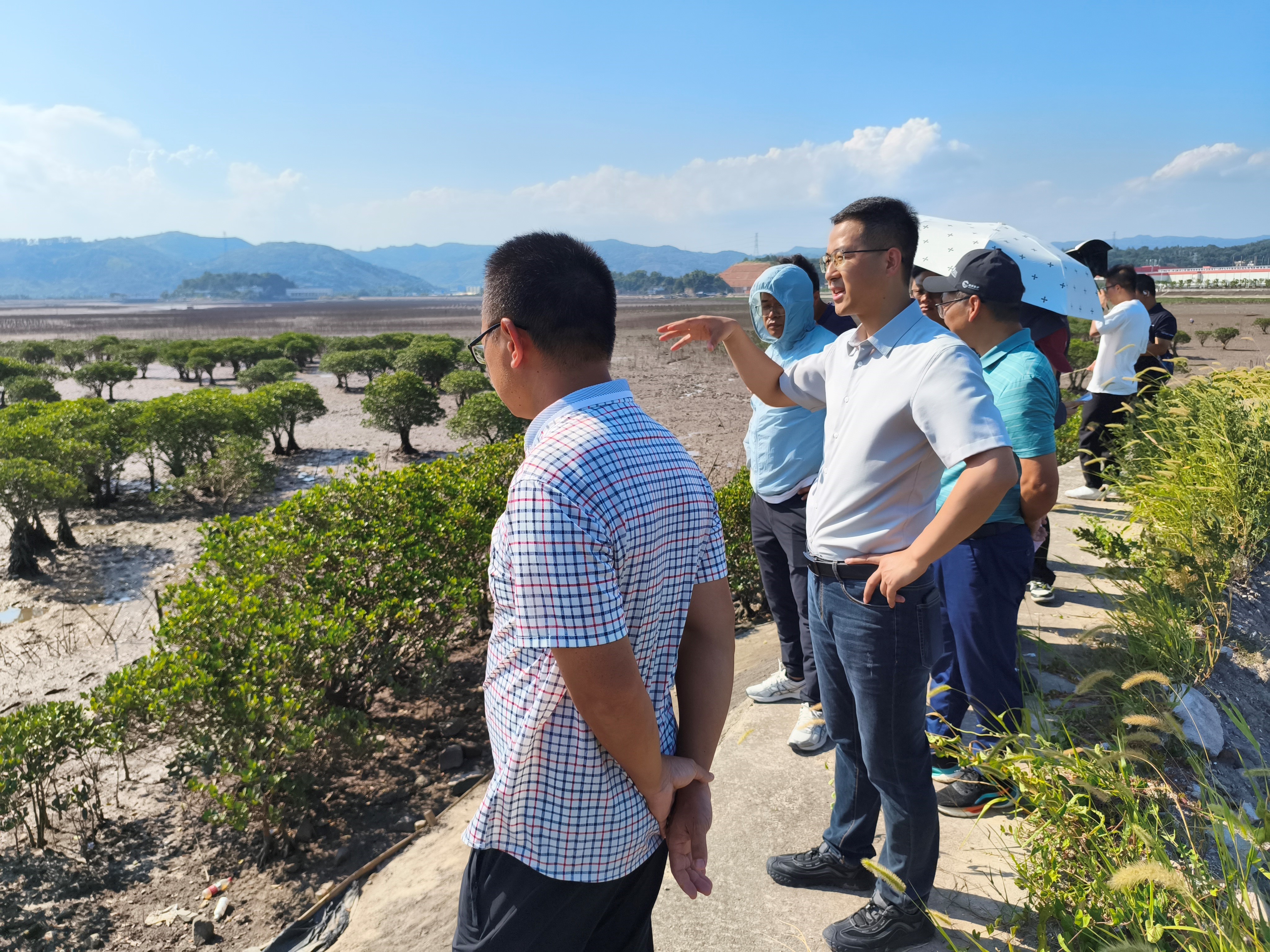 在现场示范环节,专家与学员一同走进福鼎红树林生态修复示范区,围绕苗木选择与配置、种植方法与养护措施、病虫害防控、碳汇效益监测等核心环节进行了实地演示与交流。学员们通过现场观摩和互动提问,对红树林修复的关键技术要点有了更直观、更深入的理解。
