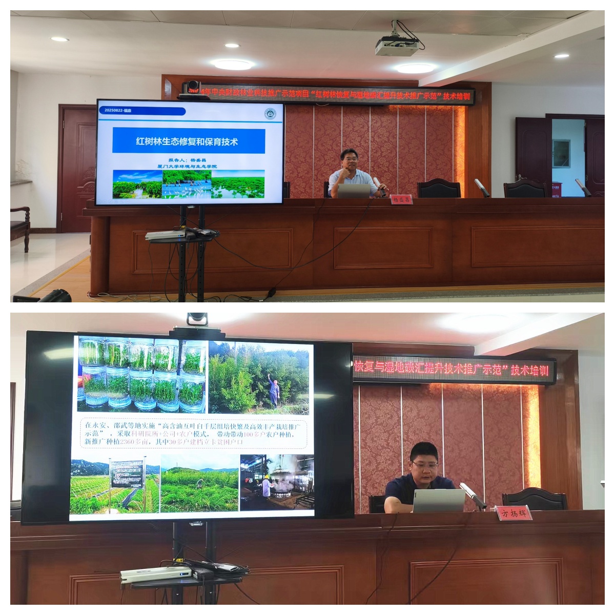 近日,由胡敏杰研究员主持的中央财政林业科技推广示范项目《福建红树林恢复与湿地碳汇提升技术推广示范》(闽[2024]TG 28号)技术培训会在福建宁德顺利举办。此次培训会采用“室内集中授课+实地操作示范”的形式,吸引了来自全省林业系统的科技骨干、基层林业干部、从事林业和农业的工作人员以及从事林业生产的农户等100余人参加。