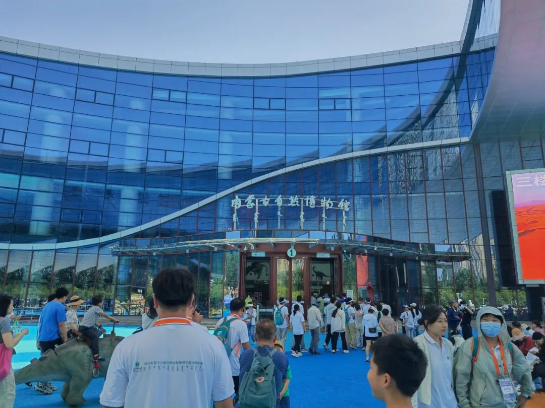 8月6日上午,实习小队抵达内蒙古自然博物馆。该馆系统展示了内蒙古地区的地质演化、地貌特征、生态系统及生物资源等自然地理要素,为理解区域自然环境提供了全面的实物与图文支撑。在参观过程中,师生们重点关注了与实习主题相关的“壮美内蒙古”和“富饶内蒙古”两个主题展厅,通过实物标本、场景复原、图文说明等形式,直观了解内蒙古从远古的地质历史时期发展到今天的沧海桑田、沙漠与草原的分布规律以及黄河流域内蒙古段的自然特征,进一步补充了野外考察中对区域自然背景的认知,实现了野外实践与室内认知的有机衔接。