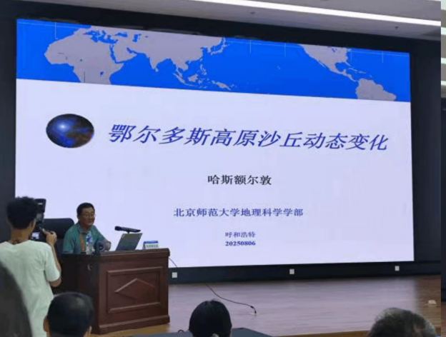专题讲座后半部分由华东师范大学光华书院院长郑祥民教授主持。内蒙古师范大学地理科学学院院长长安教授以“一片区域,一支队伍”为题作专题讲座。其中,“一支队伍”即“内蒙古师范大学地科院队伍”,“一片区域”特指内蒙古区域,长安教授详细介绍了内蒙古地区的地理概况、战略地位与资源禀赋、历史文化传承及现代发展现状。北京师范大学地理科学学部哈斯额尔敦教授以“鄂尔多斯高原沙丘动态”为题开展讲座,其研究聚焦鄂尔多斯高原的库布齐沙漠和毛乌素沙地,内容涉及沙丘固定与活化过程、沙障实验效果、新垦地土壤风蚀特征等,深入分析了沙丘动态变化规律、影响因素及形态转型模式,总结了地形形成与风力作用的关联等核心结论。教授们以扎实的理论功底和丰富的实践案例,为师生们解析了地理原理在实际场景中的应用,拓展了实习研究的思路。