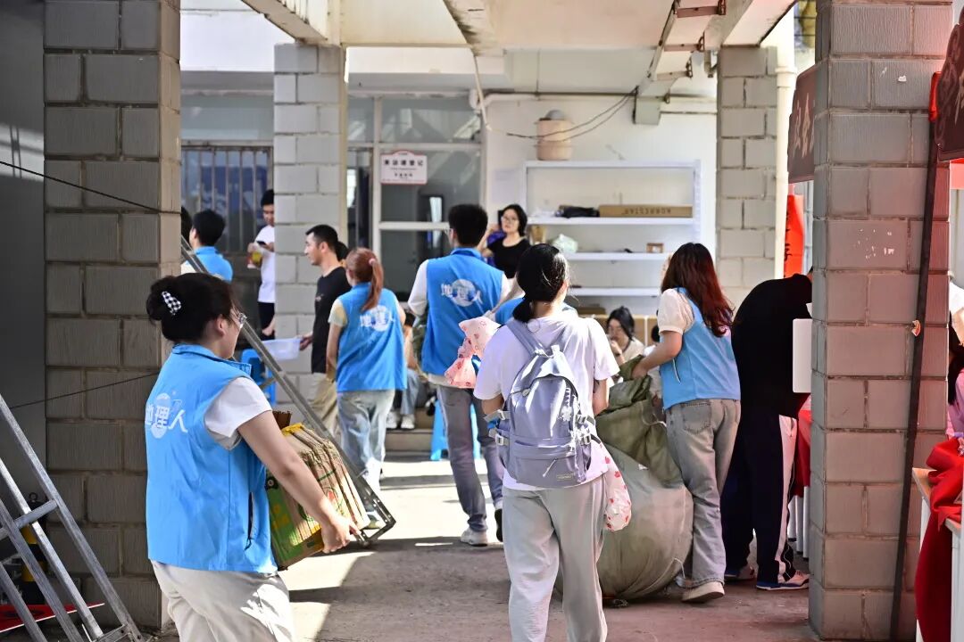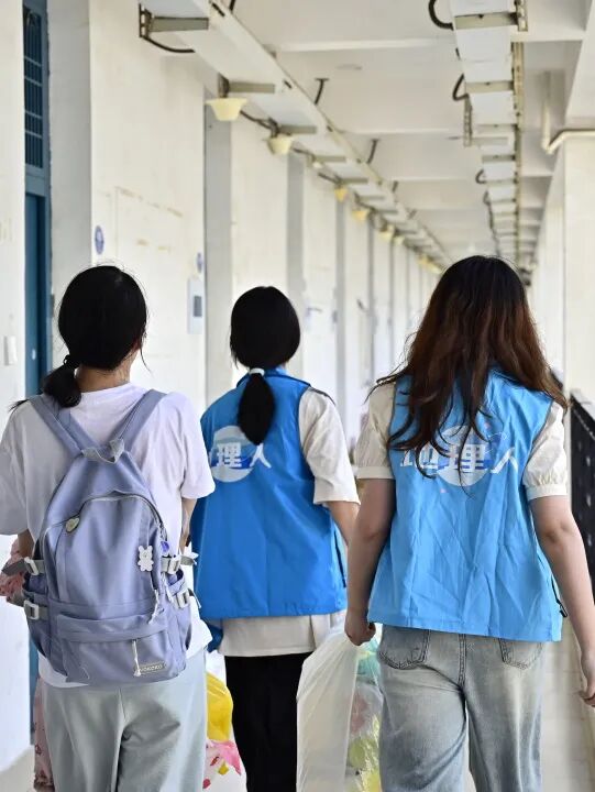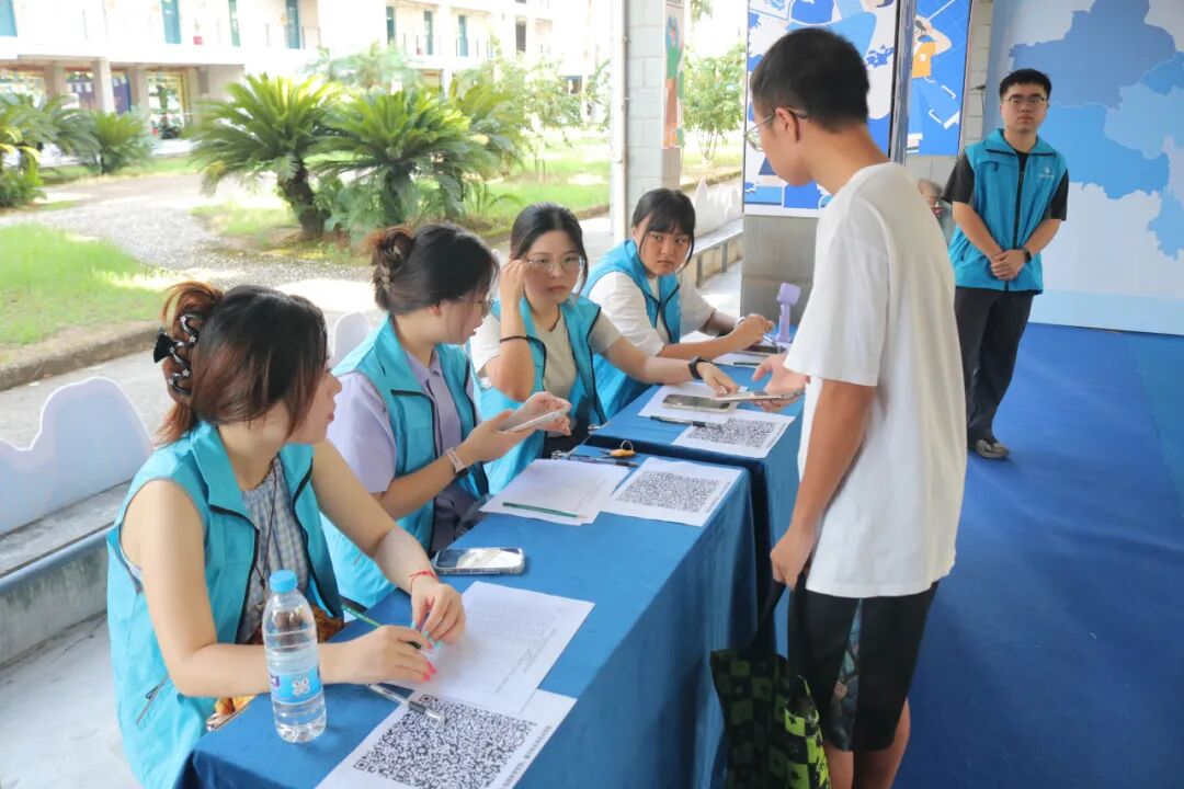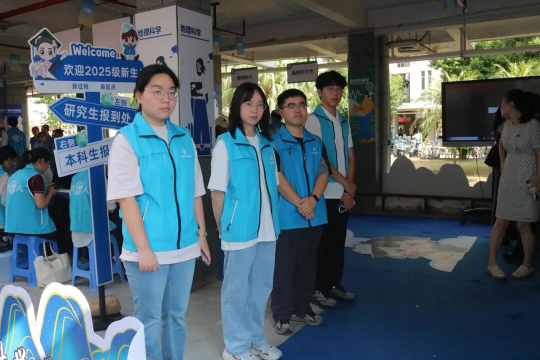 身着蓝马甲的学姐学长