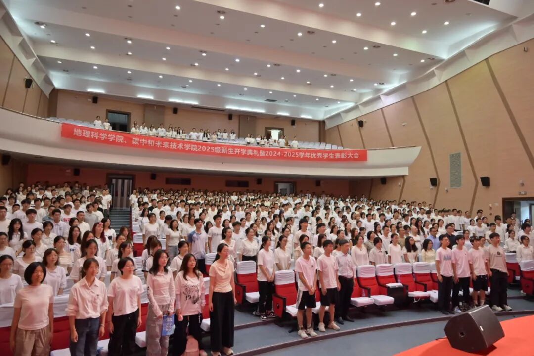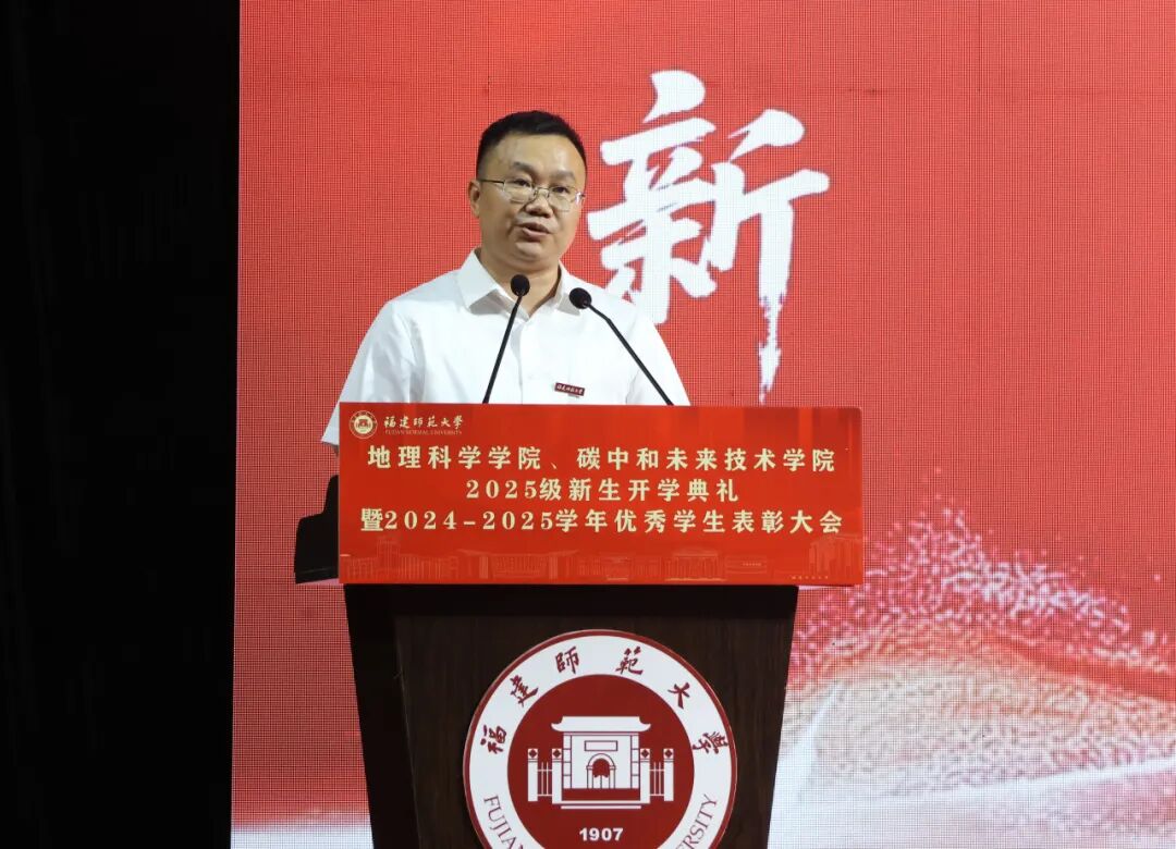 9月12日上午,“‘地’蕴新生,‘碳’筑未来”——地理科学学院、碳中和未来技术学院2025级新生开学典礼暨2024-2025学年优秀学生表彰大会于旗山图书馆大会堂隆重举行。院党政领导班子成员、院关工委、各学位点负责人、专业负责人、系主任、科室负责人、全体辅导员、全体2025级新生及师生代表共计700多人参加。典礼由院党委副书记林伟主持。