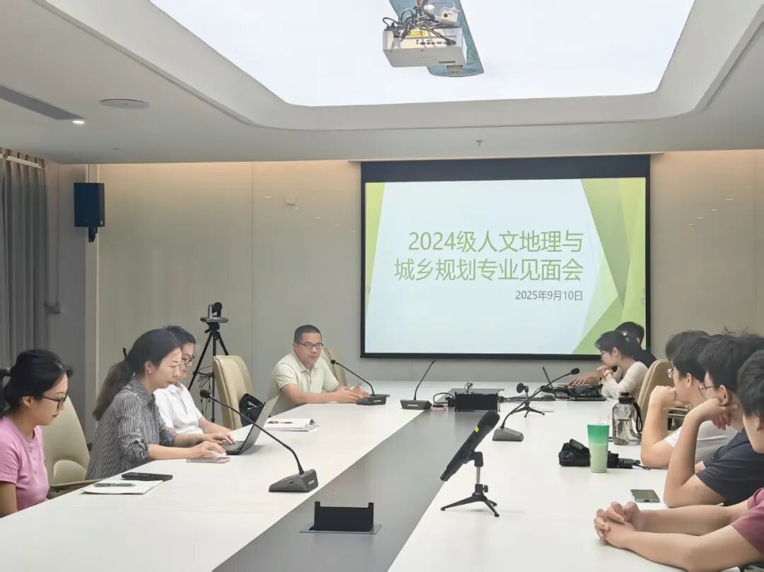 近日,2024级人文地理与城乡规划专业师生见面会暨第一次班会在科技楼16号楼813会议室举行。此次会议由专业负责人祁新华、系主任叶士琳、副主任张晨、系秘书陈静、班主任游小珺、辅导员郑新杰共同出席,聚焦于地理科学类专业分流后同学们的需求,开展答疑解惑工作,并同步提供专业指导和未来规划参考。