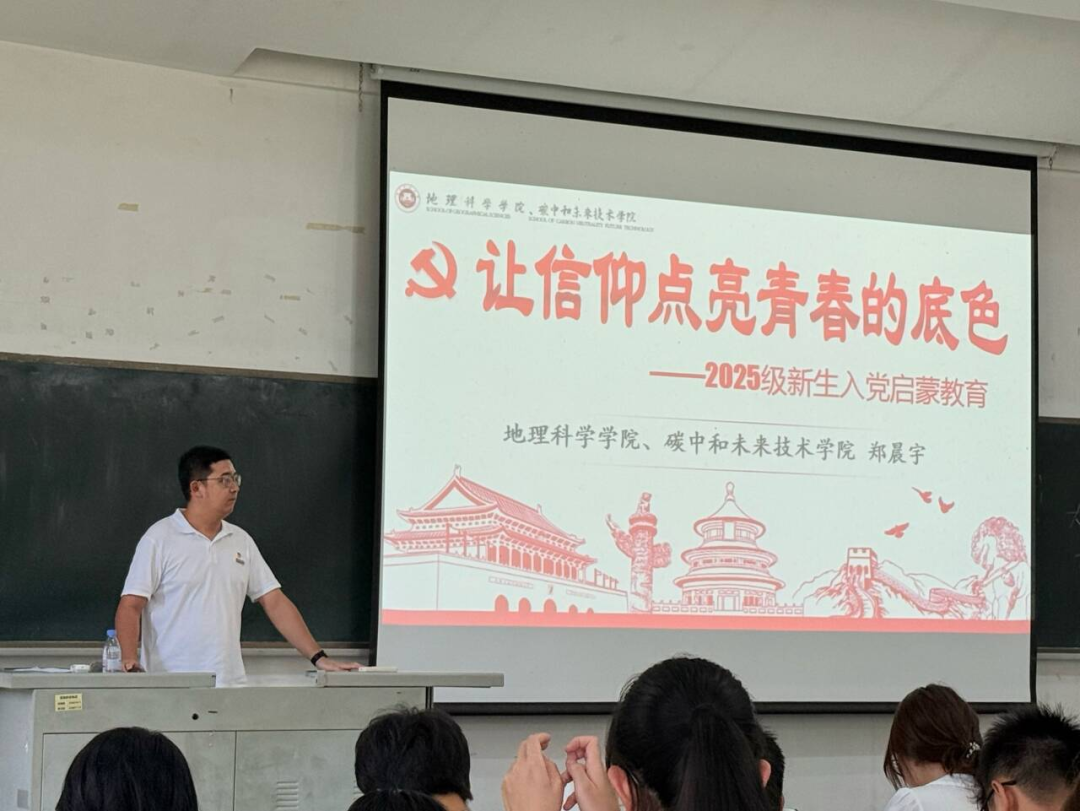 近日,我院于知明2-101举行2025级新生入党启蒙教育专题讲座。本次讲座由学院辅导员郑晨宇老师主讲,2025级本科生辅导员黄静、2025级助导和2025级本科生、研究生参加讲座。