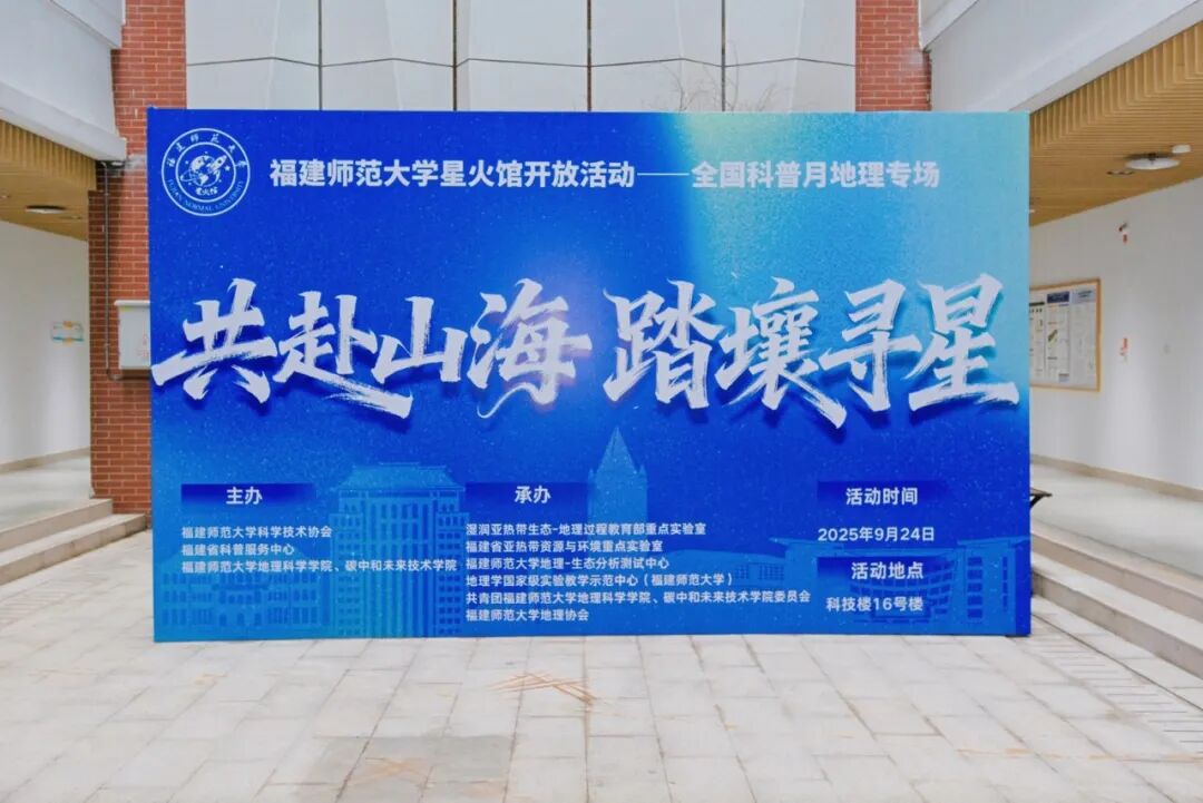 2025年9月24日下午,我院“共赴山海,踏壤寻星”科普开放日活动在科技楼16号楼圆满落幕。本次活动作为福建师范大学星火馆全国科普月系列活动之一,由省科普服务中心和福建师范大学科学技术协会联合主办,面向福州二中、福州大学校内外近百名师生开放科研实验室,探索围绕“地理+生态”科普主题,办一场科普竞赛、一场科普讲座、一次深度实地参观、一次动手实操,加N个科普讲解员的“1+4+N”科普模式,系统展示了地理学、生态学及相关交叉学科的研究内容与科普价值。