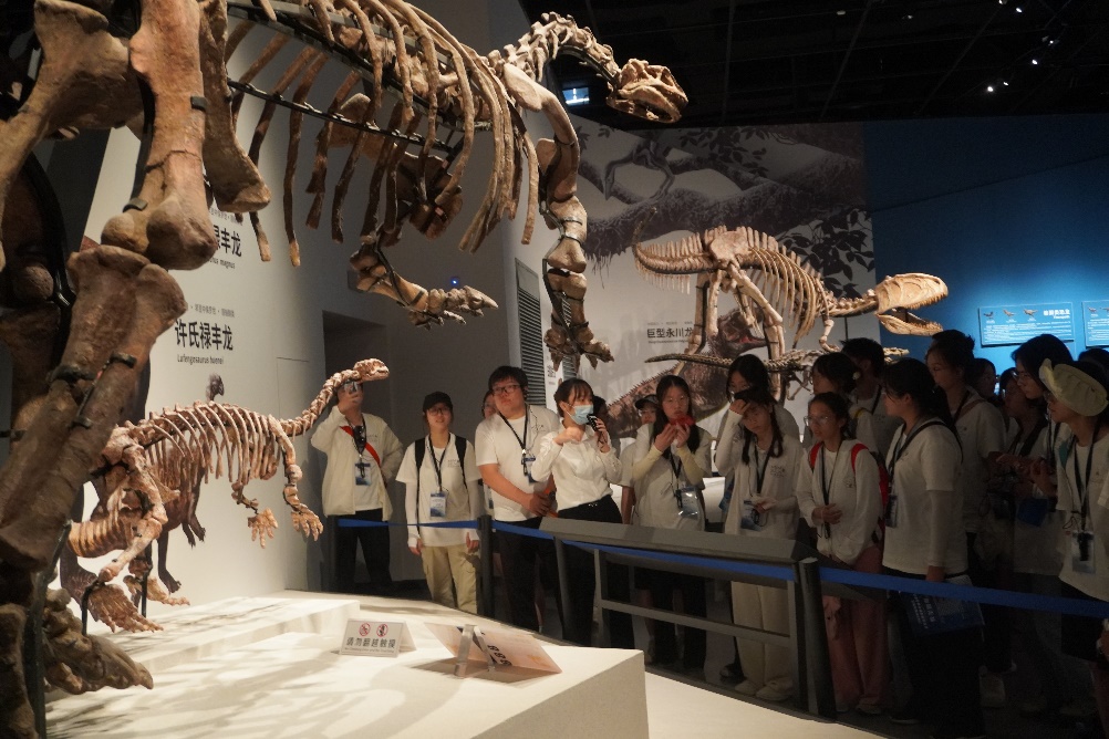 在成都期间,实习队在四川师范大学(狮子山校区)参加了“川渝高校地理科学联盟成立大会暨2023长江上游生态保护与乡村振兴论坛”;考察了成都自然博物馆矿产资源厅、龙行川渝厅、恐龙揭秘厅、生命探源厅、缤纷生命厅等各大展厅,从中认识川渝地区地球历史上的地质事件、岩石演化过程和地质作用对地质环境的影响。