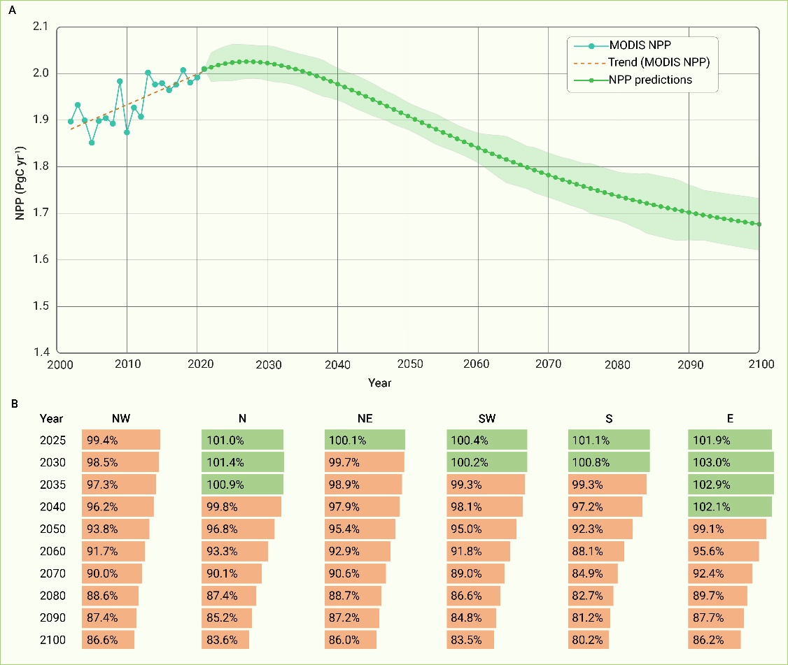 为实现碳中和,人们期待森林碳汇倍增。不少研究基于自然和人为因素预测中国未来森林碳汇将会增加22-67%。然而,这些预测可能过于乐观,因为他们并未考虑森林年龄对碳汇的影响。森林的碳汇潜力与净初级生产力(NPP)密切相关,NPP在幼龄阶段迅速增加,在中龄达到峰值,在老龄阶段逐渐下降。导致老龄林NPP下降的主要机制是总初级生产力(GPP)和自养呼吸(Ra)随林龄减少,其中GPP的减少速度更快。中国自20世纪60年代以来进行了大规模的造林和再造林计划,森林覆盖率从14%增加到23%,导致大部分森林处于幼龄和中龄阶段,具有较高的碳吸收能力。如果不发生大规模的森林砍伐,中国森林还能维持一段时间的高碳汇。但随着森林的自然衰老,降汇风险将显著增加。