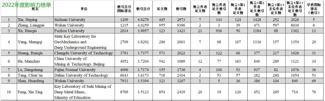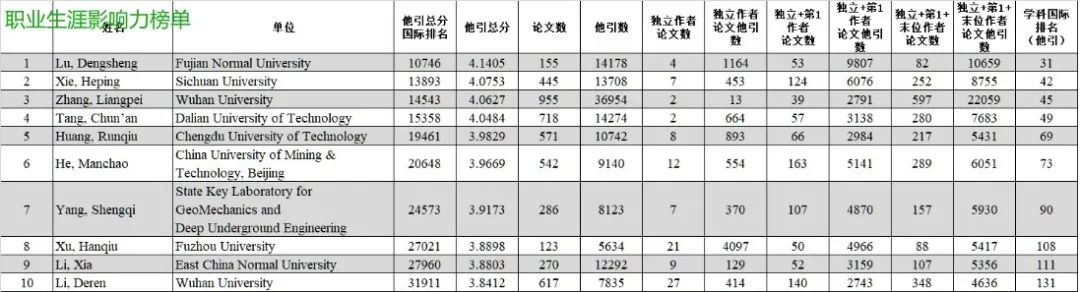 最近,斯坦福大学发布了2023年全球各学科前2%科学家榜单(第六版),我院陆灯盛教授第四次入选“职业生涯影响力榜单”(career-long citation impact)和“2022年度影响力榜单”(citation impact during the single calendar year)。榜单中,陆灯盛教授位列Geological & Geomatics Engineering领域“职业生涯影响力榜单”第一(全国共150人)、“2022年度影响力榜单”第七。此榜单致力于从多维度展示科学家的科研状态,提供一个面向科学家长期科研表现的衡量指标,以期能够更客观、更真实地反映科学家的影响力。