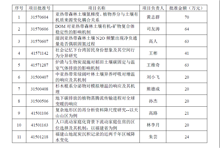 国家自然科学基金委员会近日公布2015年度国家自然科学基金申请项目部分评审结果,截至发稿日,我院共获得11项资助,其中面上基金项目5项,青年科学基金项目6项,总共资助426万元。