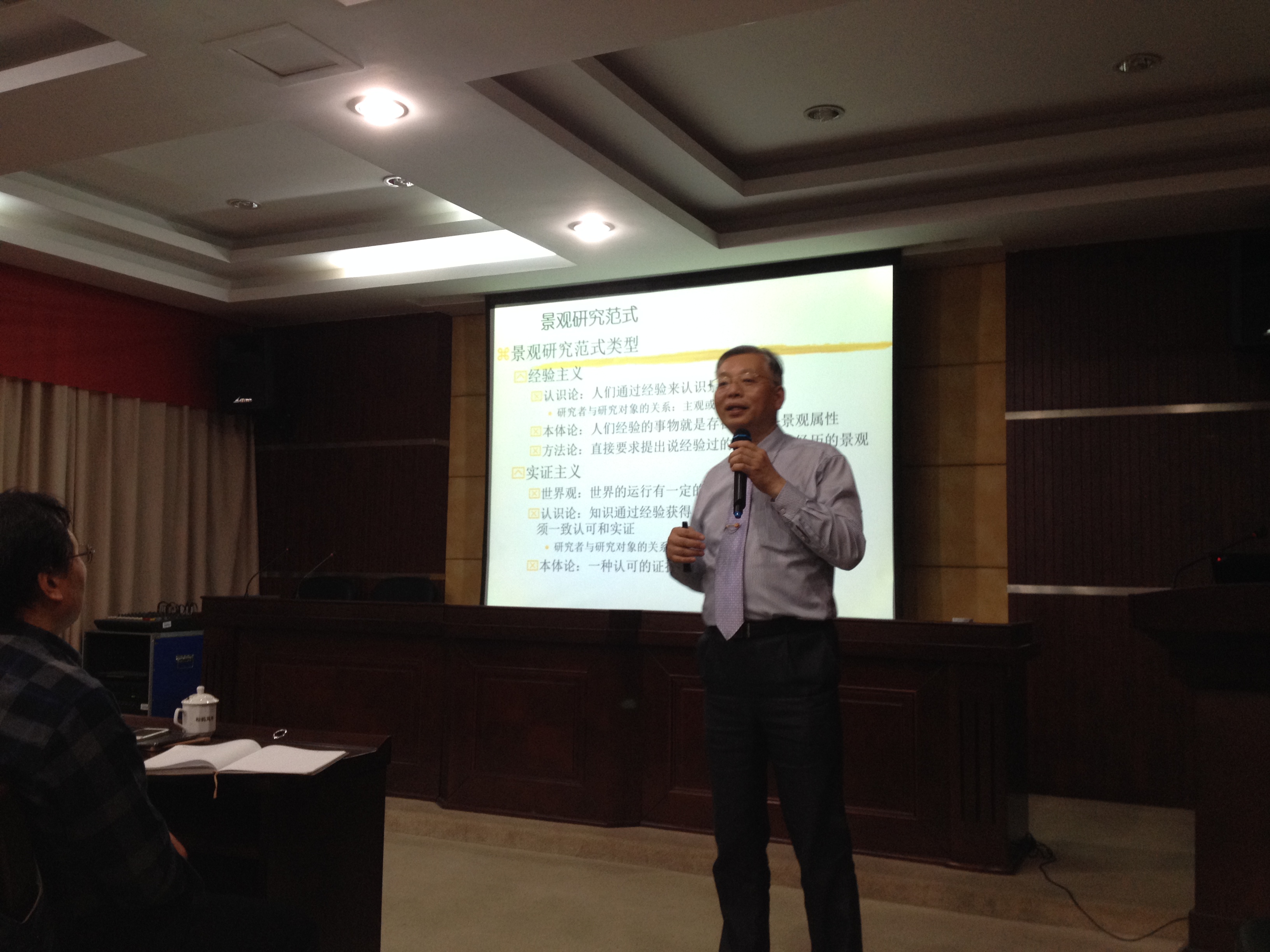 张捷教授以旅游景观概念体系为主线引出了景观的定义、演化及其特性,列举开平碉楼、庐山文化遗产、嵩山等著名旅游景区展示了空间凝视在旅游景观研究中的意义,举例运用马克思主义研究范式来说明旅游景观研究的范式特征。此外,张捷教授还现场播放了《高山流水》、《秋江夜泊》等名曲,并借此介绍了声景观与书法景观的研究实例,令在场师生受益匪浅。
