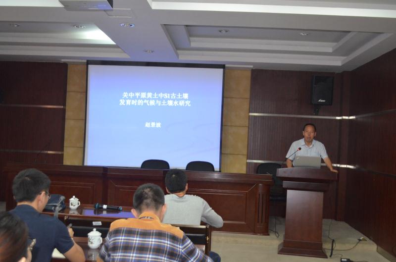 中午休息后于下午2:30,赵教授又围绕《黄土高原第四纪土壤与环境研究进展》这一主题与现场师生再次交流学习。报告中赵教授提出了适用于我国的土壤淀积理论,根据淀积成分的分布深度和特点,确定化学成分迁移的深度与淀积的类型,以进一步研究土壤与环境的变化关系,这弥补了以往根据化学成分含量研究的传统含量理论的缺陷。该理论也成功运用到了黄土高原气候变化研究中,充分彰显出理论研究的巨大影响力。