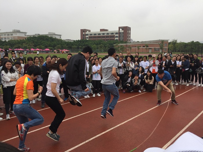 本次运动会以“快乐健身,活力随行”为主题,以系、部门工会小组为单位,以团体赛形式进行。运动会共设乒乓球拍持水跑、百步穿杨掷飞镖、三人四足共进退、三人配合掷乾坤、通力合作跳大绳等多个项目。参赛教职员工团结协作、奋勇争先,妙趣横生,既体现了“更高、更快、更强”的体育精神,也充分展示了教师们快乐健身的风采。场外观赛的同学纷纷为老师们的精彩表现加油助威,师生同乐、现场气氛十分热烈。