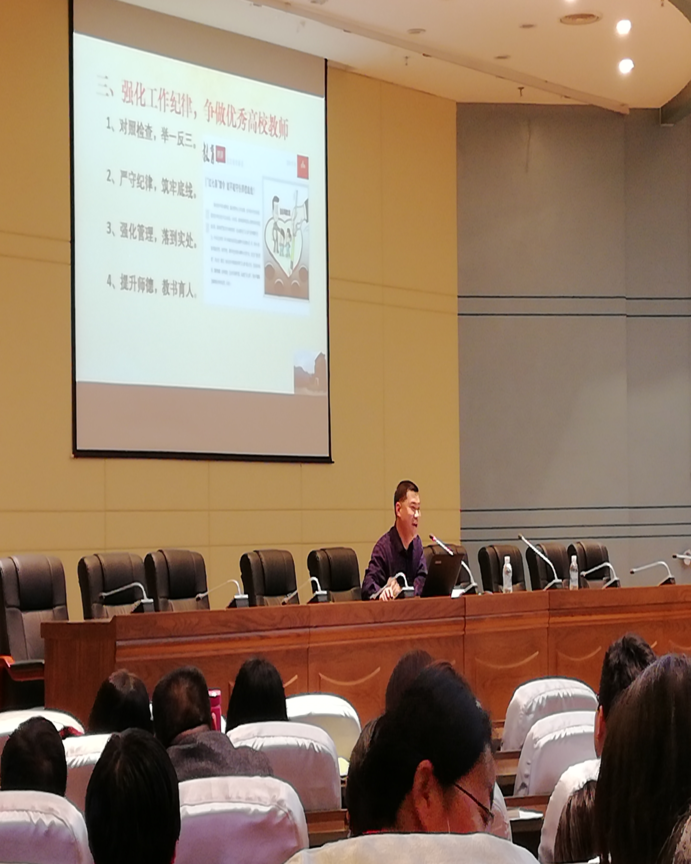 学院党委书记张虎做了题为《强化师德建设,筑牢意识形态工作防线》的讲话,动员全院教职工牢固树立“四个意识”,坚定“四个自信”,把智慧和力量凝聚到实现党的十九大确定的目标任务上来,全面落实全面从严治党“两个责任”和意识形态工作责任制,把握改革趋势,破解学院发展瓶颈,主动对接“一流学科建设计划”,为加快建设高水平大学和“再上新台阶、建设新福建”做出新的更大贡献。