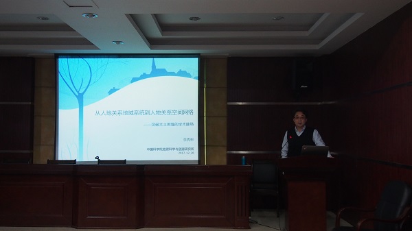 2017年12月26日下午15:00,应地理科学学院、福建省湿润亚热带山地生态国家重点实验室培育基地邀请,中国科学院地理科学与资源研究所李秀彬研究员莅临地理科学学院,在邵逸夫楼五楼会议室开展题为“从人地关系地域系统到人地关系空间网络研究”的学术讲座。讲座由陈松林教授主持,人文地理学、土地资源管理学和生态学等多个专业的师生参加了此次讲座。