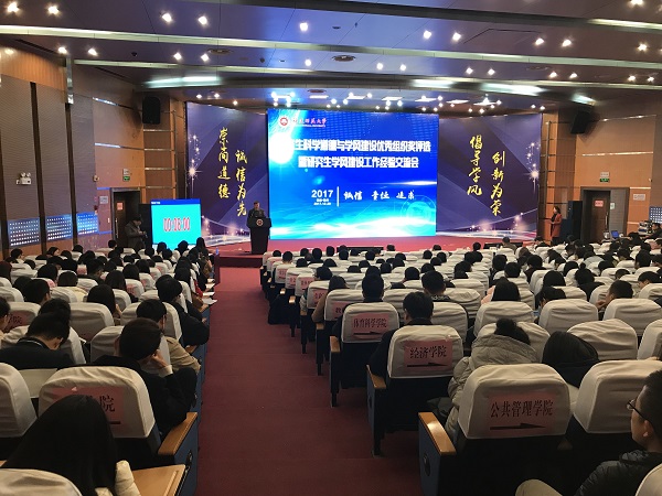 2017年12月20日下午,福建师范大学研究生科学道德与学风建设优秀组织奖评选交流会暨研究生学风建设工作经验交流会在旗山校区书馆学术大讲堂如期举行,校党委副书记叶燊出席会议,参与活动的还有研工部、校团委、宣传部等职能部门领导、各学院分管学生工作副书记、研究生辅导员及各学院研究生代表。地理科学学院参与评选并获得一等奖。