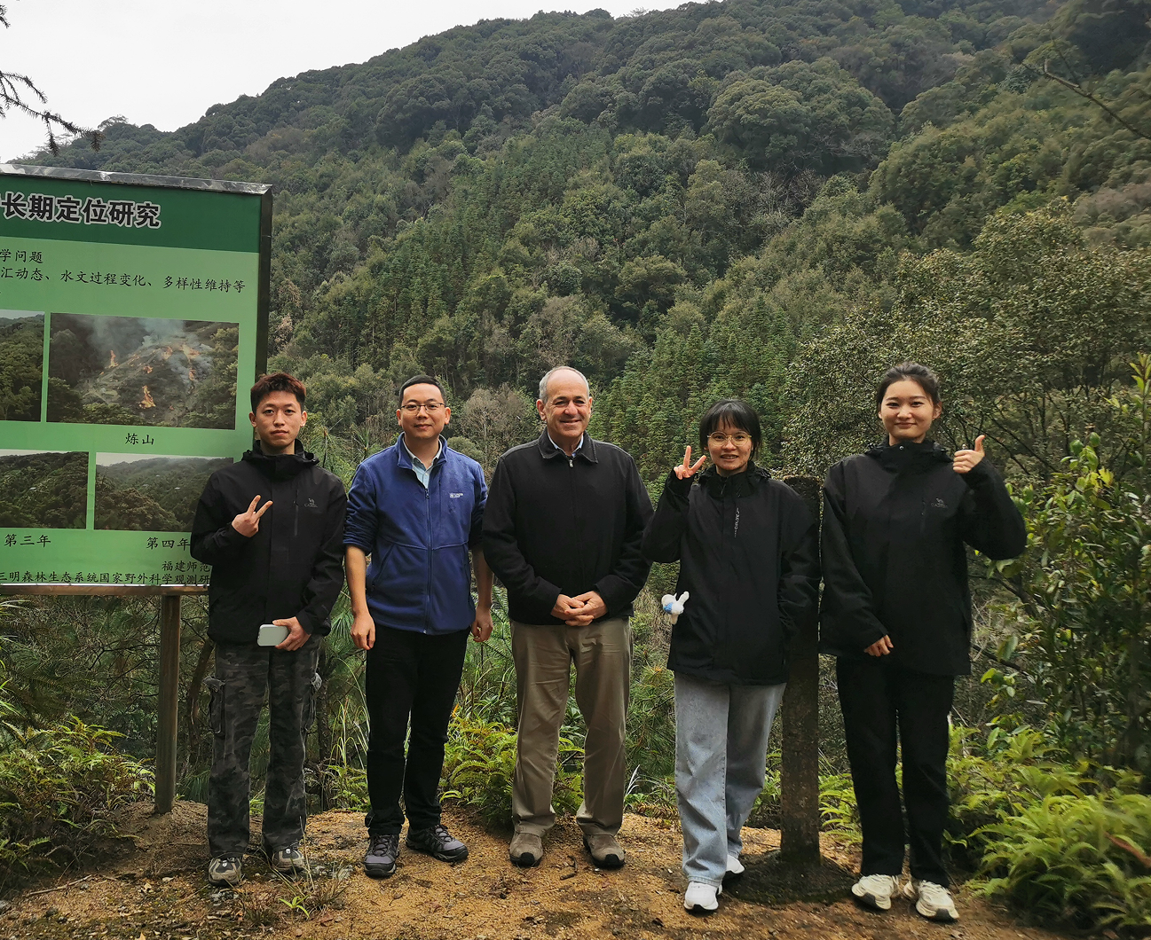 讲座结束后,倪祥银研究员陪同Peter Groffman博士赴三明国家野外站森林经营管理平台、氮沉降和隔离降雨平台、杉木幼林增温平台、上杭双通量塔移动观测平台进行了深入交流,对团队正在开展的凋落物输入微宇宙实验、老成土(Ultisols)有机质稳定机制、集水区碳水通量长期监测等进行了建设性指导。