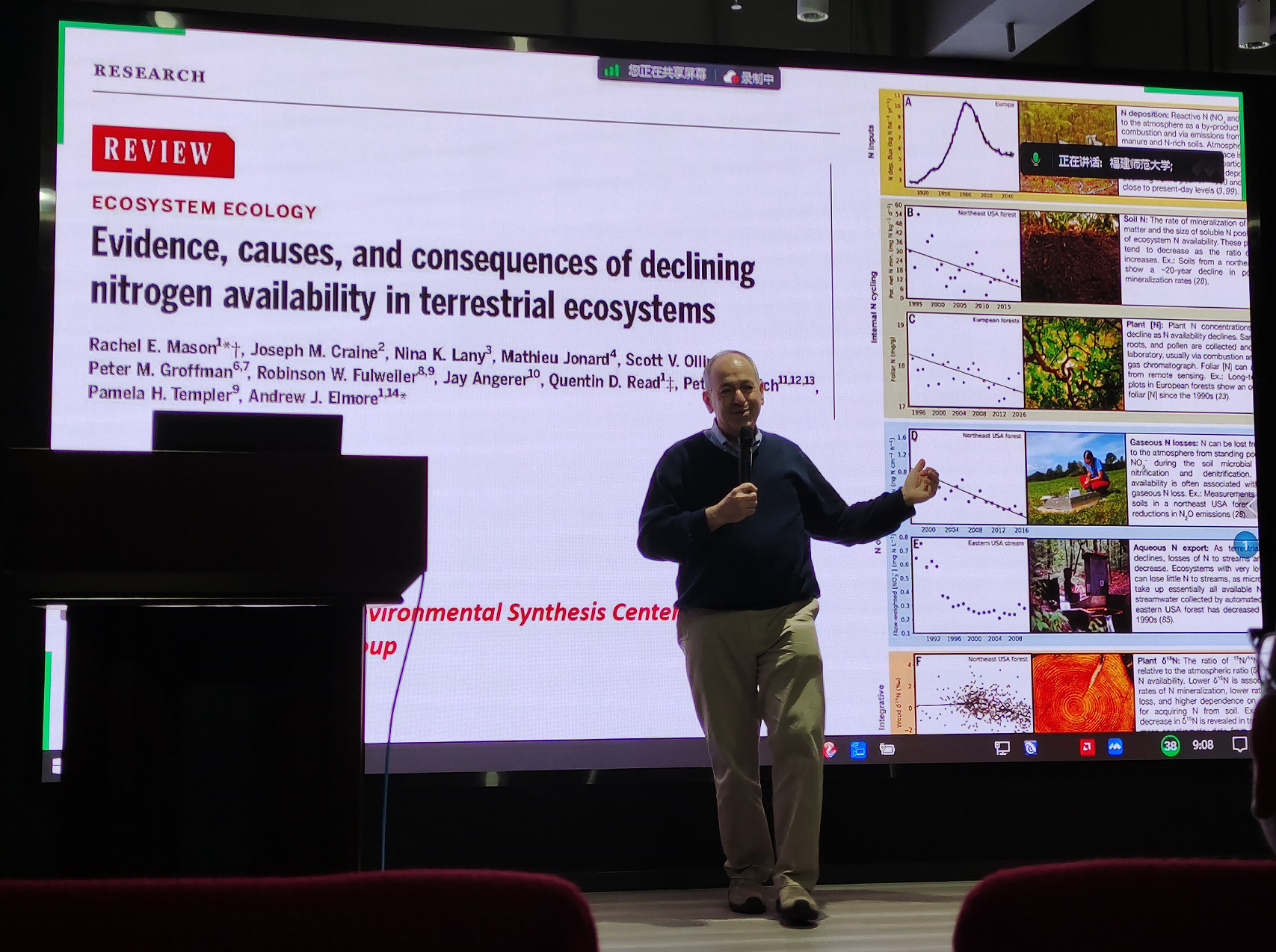 为进一步交流学术思想、推动务实合作,我院邀请了美国卡里生态系统研究所(Cary Institute of Ecosystem Studies)Peter Groffman博士于2023年12月18日上午在旗山校区16号楼610学术报告厅作了题为“Evidence, causes, and consequences of declining nitrogen availability in terrestrial ecosystems”的学术讲座。讲座由倪祥银研究员主持,吸引了60余名自然地理学、生态学专业师生现场参加、100余名老师和研究生线上参加。
