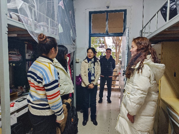 25日下午,院党委书记林翠容、副书记林伟及各年级专兼职辅导员深入学生宿舍,对宿舍高功率电器使用、疏散通道和安全通道堵塞、电动车长期未使用引发的电池安全隐患等开展重点检查,并对检查过程中存在的个别问题进行现场指导,对薄弱环节做出工作安排。同时,林翠容书记、林伟副书记与返校同学进行深入交流,对同学们寄予深切的勉励、殷切的期望。