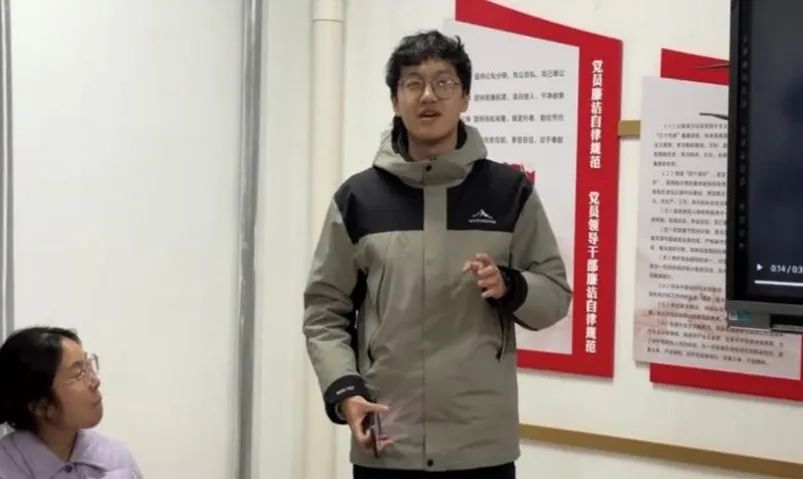 紧接着,由支部优秀党员戴晓莹和蔡政轩同学以近期校内发生的交通事故为案例带领大家一起回顾校园的交通规则,通过惨痛案例警示成员们遵守交规。此外,蔡政轩同学还分享了学校安全管理政策的相关内容,包括校园安全用电、学生违规处理办法等,希望同学们能了解并遵守这些规定,共同维护校园秩序,建设安全校园。