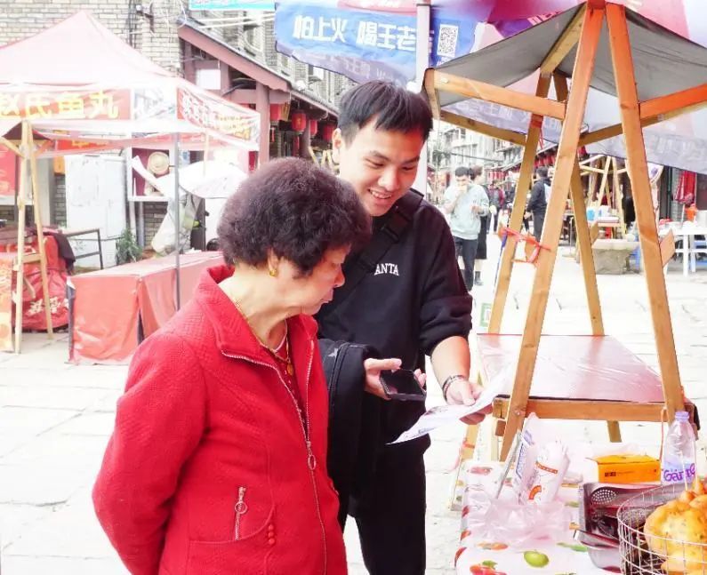 活动当天,团支部成员前往侯官古街,通过讲授支部前期制作的科普手册,向当地居民或者游客传授了防灾减灾知识,并结合科普手册教授了一系列实用简单的防灾减灾技巧。支部成员还邀请社区居民参与科普手册中的H5互动网页挑战,加深了居民对防灾减灾知识的理解和应用。