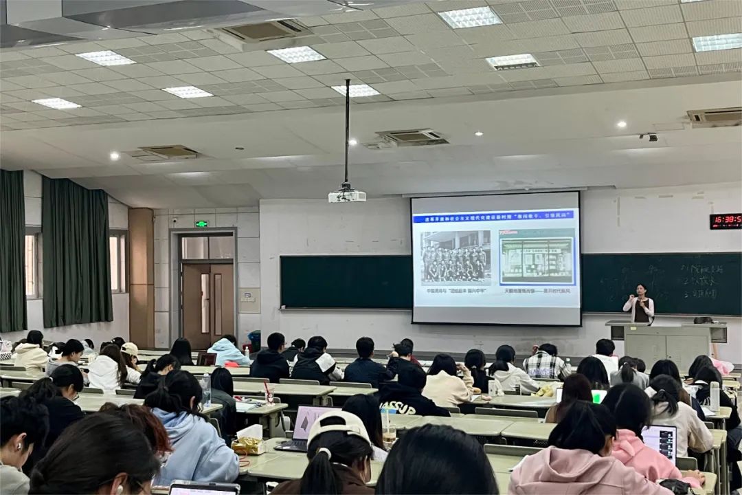 第二部分则由马克思主义学院杨小霞老师为作题为《中国式现代化进程中的青年担当》主题讲座。杨小霞老师首先介绍了中国共产党领导青年运动的光辉历程,指出在我国百年奋斗历程的不同时期,我国青年展现出来了相同的热爱祖国、奉献自我的精神风貌。同时,杨小霞老师向参会大学生骨干介绍了中国式现代化的概念内涵,并以“一带一路”为例子讲述了我国在现代化进程中取得的种种成就。最后,杨小霞老师强调新时代青年应补足精神之钙,勇担时代使命,为实现中华民族伟大复兴贡献青年学子的力量。
