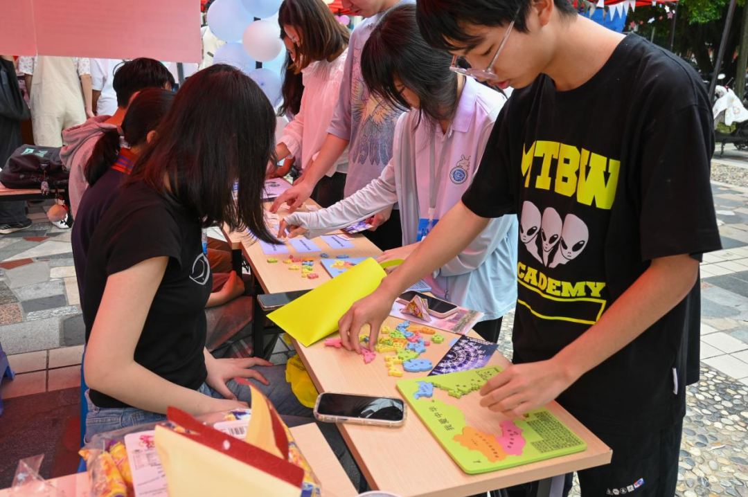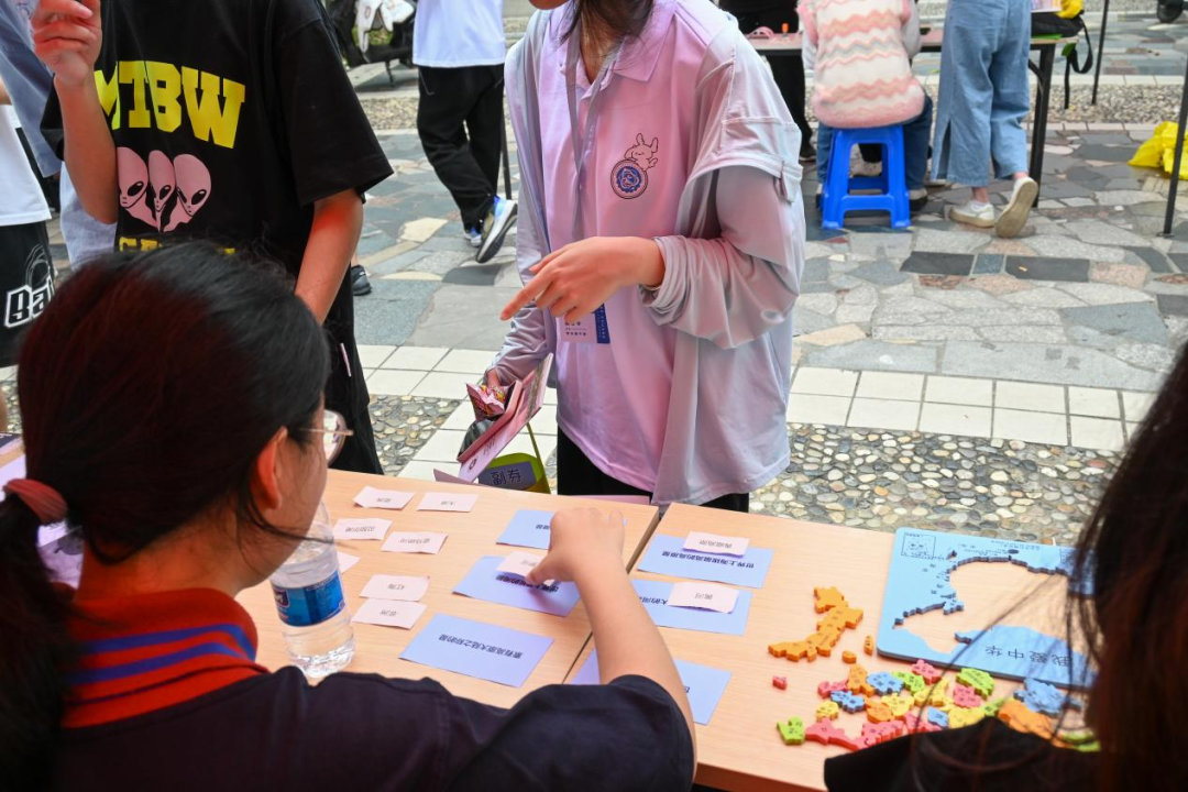 此外现场还通过互动游戏的形式激发同学们对地理知识的兴趣,该环节共设置了三个与专业有关的小游戏,分别是“地理知识趣味猜”“地理知识连连看”“祖国领土我明晰”。互动游戏不仅趣味性十足,还很好地让同学们学习到了地理学科知识。