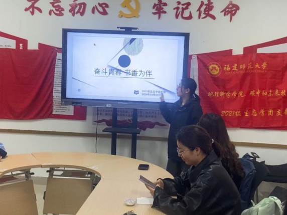 为了营造“书声琅琅,书香满校园”的良好氛围,积极倡导“我与好书同行”的思想,促进同学们形成“多读书、读好书、好读书”的良好习惯,4月9日晚,我院2021级生态学团支部于李苑一号楼二楼活动室召开“奋斗青春,书香为伴”主题读书分享会。