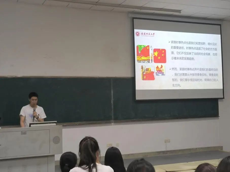 学院青年学子宣传团筑梦青春专题小组开展了一场主题为“紧跟时事热点,探寻青春目标”的宣讲活动。此次活动旨在引导同学们关注社会时事,激发他们的责任感和使命感,为他们的成长和未来发展提供指引。林潇睿同学在活动结束时表示,探寻青春目标的过程中,我们青年要敢于追梦,勇于实践,敢于挑战自我,不断突破自己的舒适区,去尝试新的事物,去探索未知的领域!希望同学们能将宣讲活动所传达的理念和精神融入到自己的学习和生活中去,勇敢追求梦想,为实现中华民族伟大复兴的中国梦贡献自己的力量。