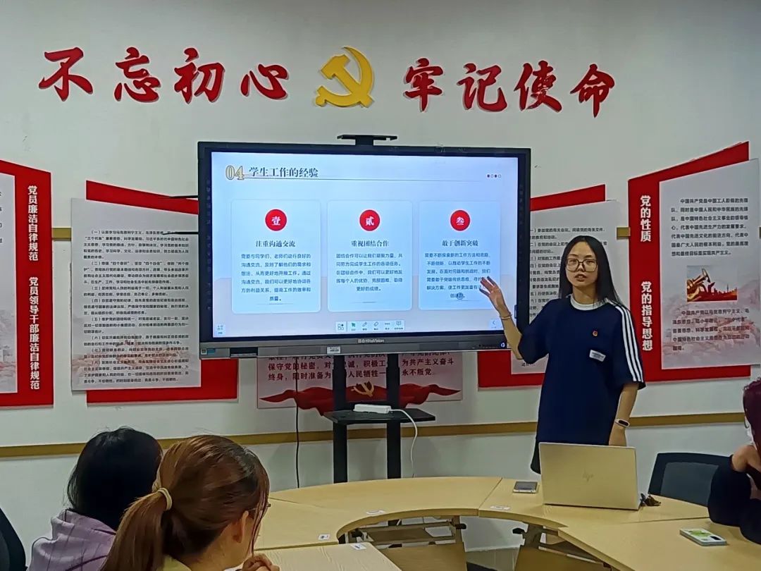 在后续的学生工作经验分享会上,团支部书记陈青露就采访内容进行了整理总结,并传达给了支部成员们。