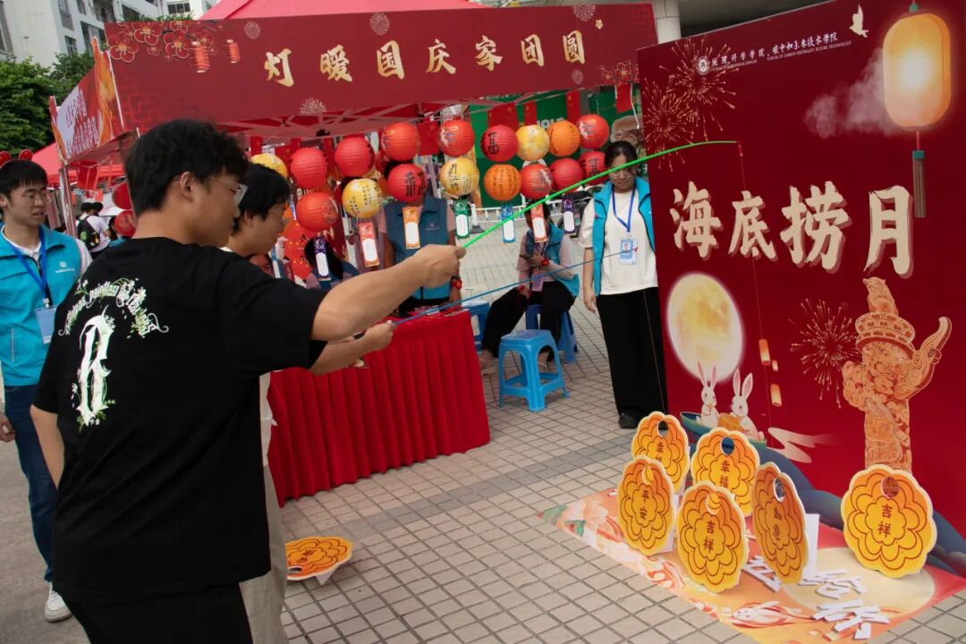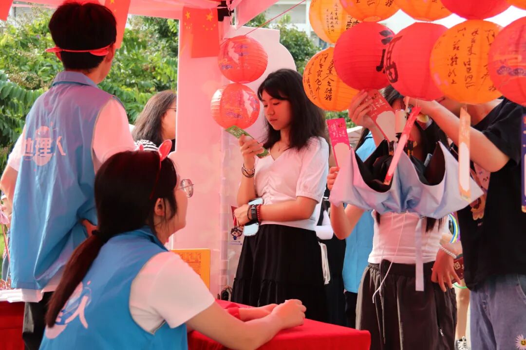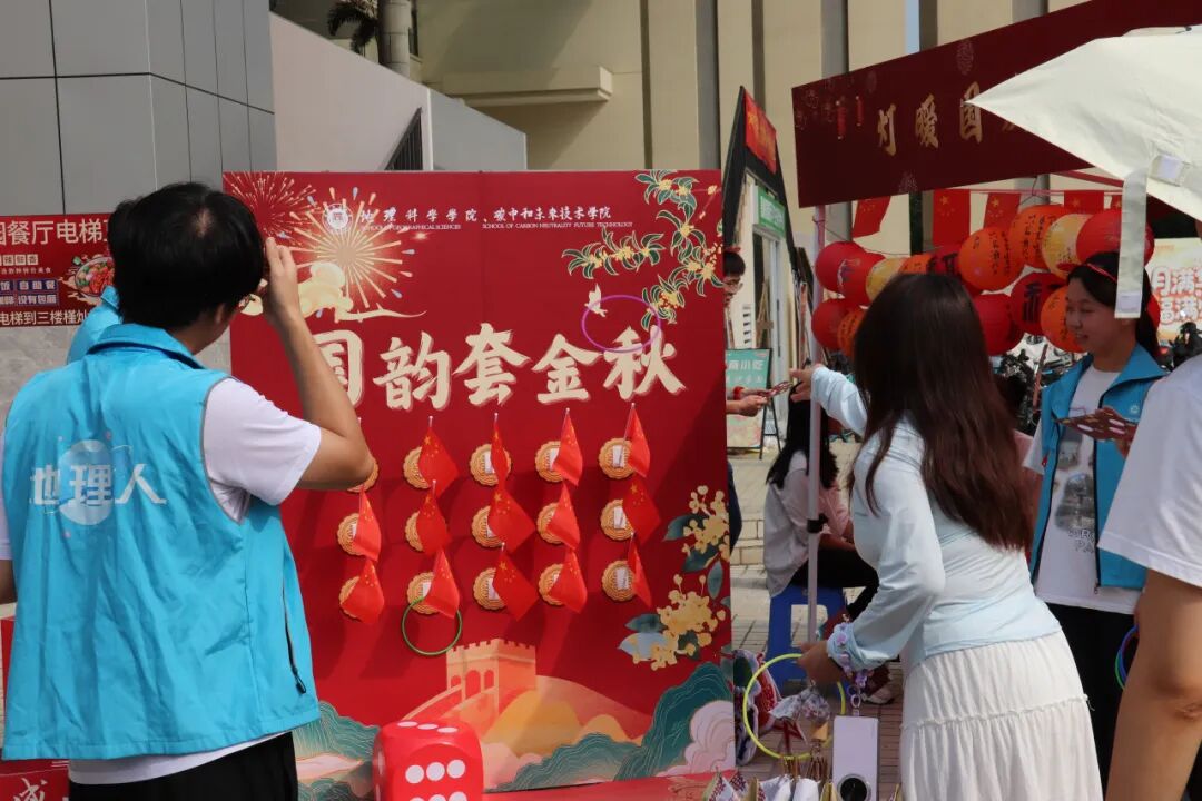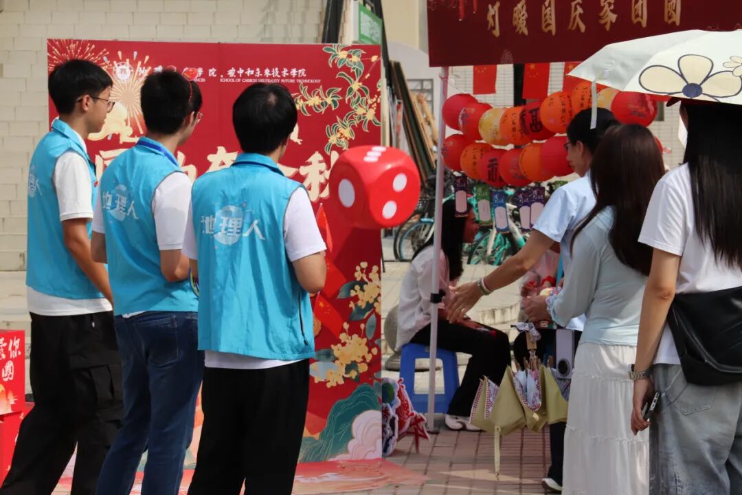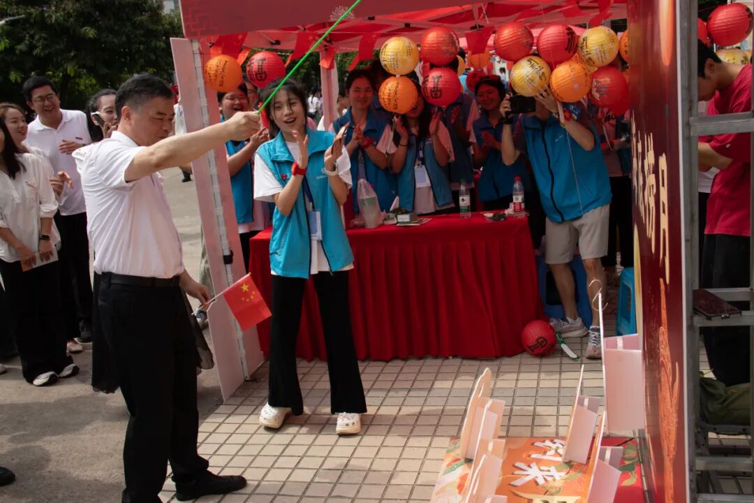 10月1日上午,校长郑家建教授、校党委副书记吴剑锋在我院党委书记林翠容、副书记林伟的陪同下来到活动现场,参与游园活动,与青年学生共度国庆中秋佳节。