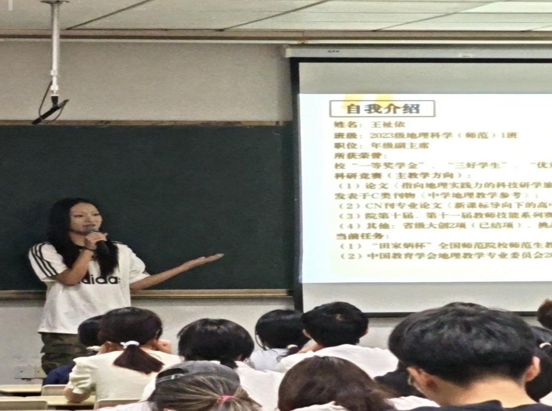 2022级自然地理与资源环境专业的冯若铃学姐以“重活一世,我们决定!”为主题,从学业规划、科研入门、学生工作等维度拆解大学成长路径。她强调“尽早锚定目标、多维度积累”,用清晰的时间线和实用技巧,让新生看到“优秀是可以规划的”。