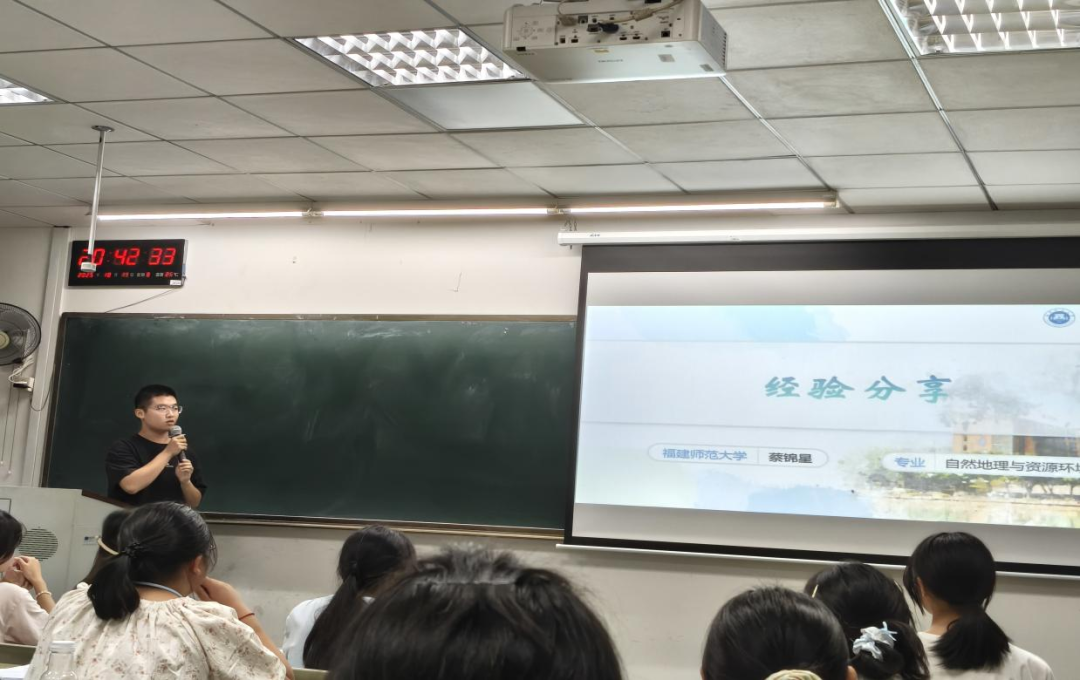 2022级自然地理与资源环境专业的刘丞泽学长则从科研进阶、成绩管理、心态建设入手,用“科研成长曲线”直观展示从大一开始的能力积累逻辑,更以一段温暖的寄语告诉大家:“大学没有标准答案,跟着本心走,才能收获属于自己的精彩。