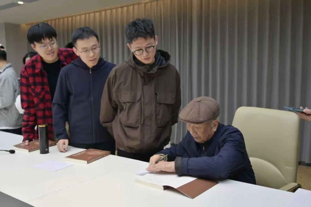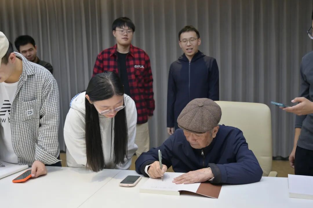 采访后,正值朱鹤健教授专著《现代地理学新探:科学观·应用观·教育观》从1170种书目中脱颖而出入选首届“韬奋好书”,我院本硕博学生纷纷与朱鹤健教授就专著内容、学科专业、职业规划等进行交流,并与朱鹤健教授合影留念。朱鹤健教授在青年学子们的书本上亲笔寄语,鼓励大家在地理学、生态学学习科研道路上锐意进取、勇攀高峰。