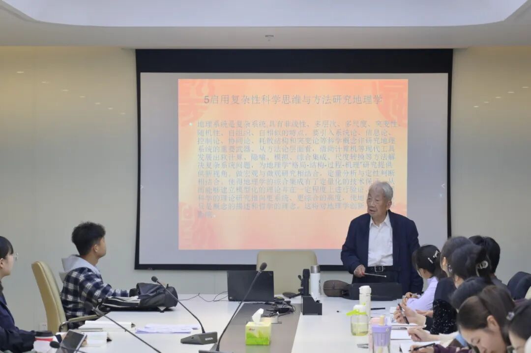 答:我不是教育家,只是一名执教70年的教育老兵。教育家精神最核心的是掏心付出,父母爱子是天性,而老师要学生成才,需要修炼“师性”,把心放在学生的成长上。先学会爱学生,才会真正爱教育、爱念书。我常以“耕耘忙作乐,只为桃李芳”自勉,把学生的进步当作最大快乐。传承这一精神,就要把教育当作事业追求,始终心系学生成长,助力后辈远航。此外,地理学是文理交叉的基础应用科学,既要讲“理”立住学科,又要服务社会,这也是地理人传承教育精神的重要底色。