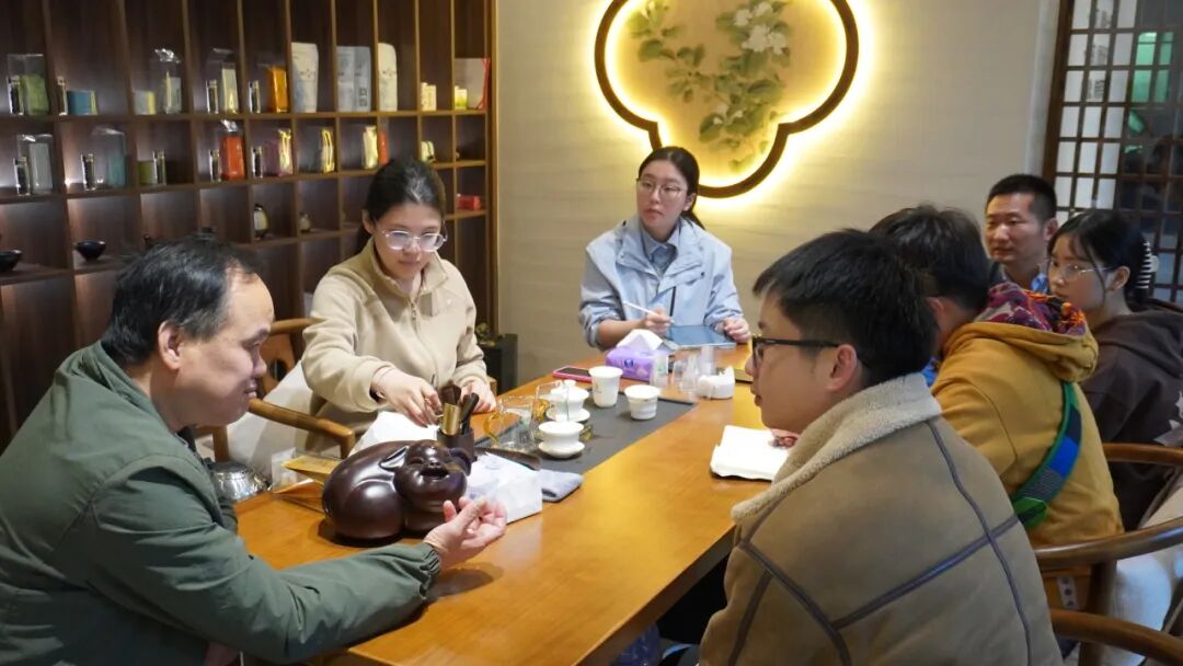 同学们深入茶叶种植基地、加工车间、品牌展示与体验空间,从种植管理、加工工艺、质量控制,到品牌建设、市场推广与文化赋能,全方位了解了茶产业的产业链构成与创新发展模式。通过与企业负责人、生产一线人员的访谈,大家对地理环境、产业布局、区域品牌塑造之间的内在联系有了更直观的认识,进一步理解了“一片叶子成就一个产业”的乡村振兴实践。